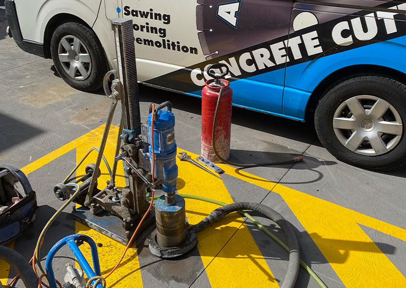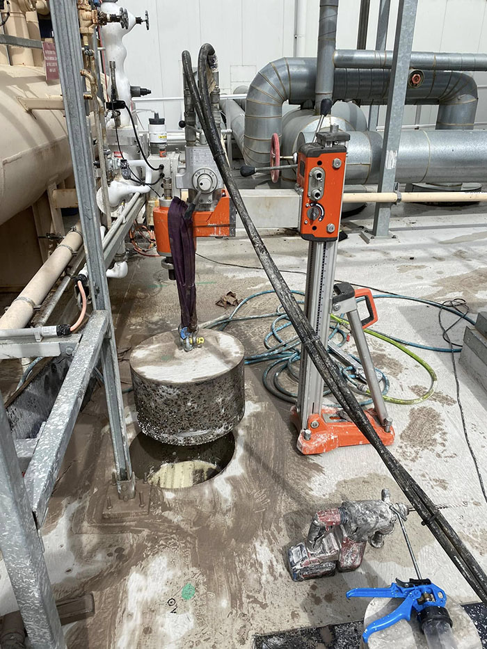 If there is no electricity on your premises – or where electricity can’t be used, for example wet or flooded areas – a special Hydraulic Core Drill can be used. It can also be used indoors safely, as well as for vertical and inverted (upside down) drilling.